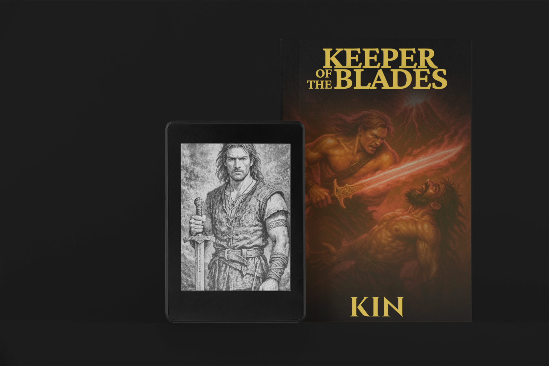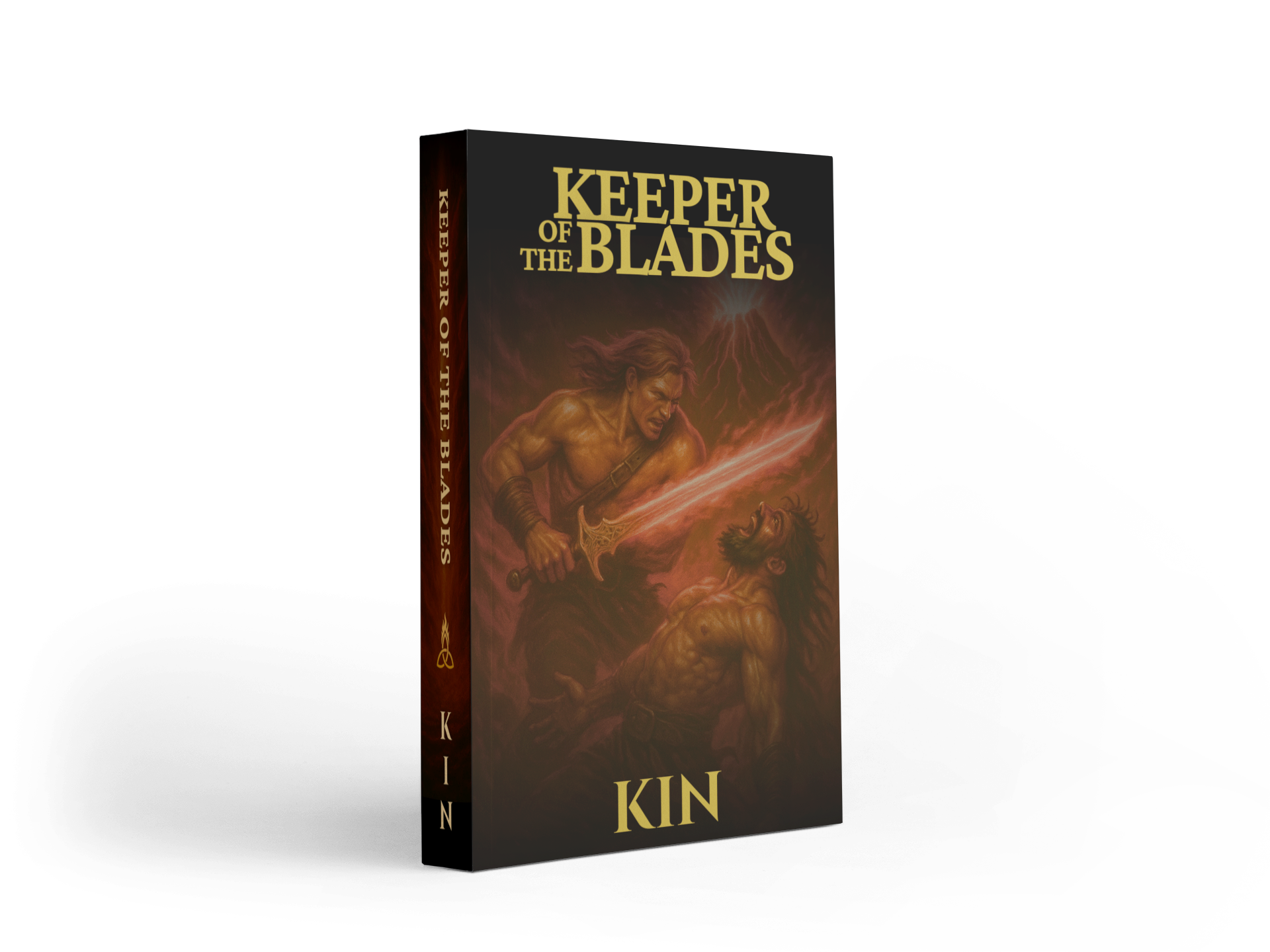 When Chieftain Breccan Kin is slain by poison and the ancestral blades of the Kin bloodline are stolen, Rhun Kin is thrust into a reckoning he never sought. The seven blades were not forged for conquest. Generations ago, Caldran Kin shaped them as a final safeguard against catastrophe — a failsafe against the awakening of an ancient force buried beneath Mount Kiln.